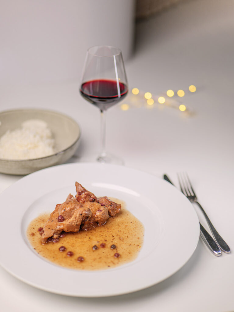 Première des deux nouvelles recettes festives et gourmandes que la maison Patignac a le plaisir de vous présenter en cette fin d’année : le sauté de porc aux airelles.