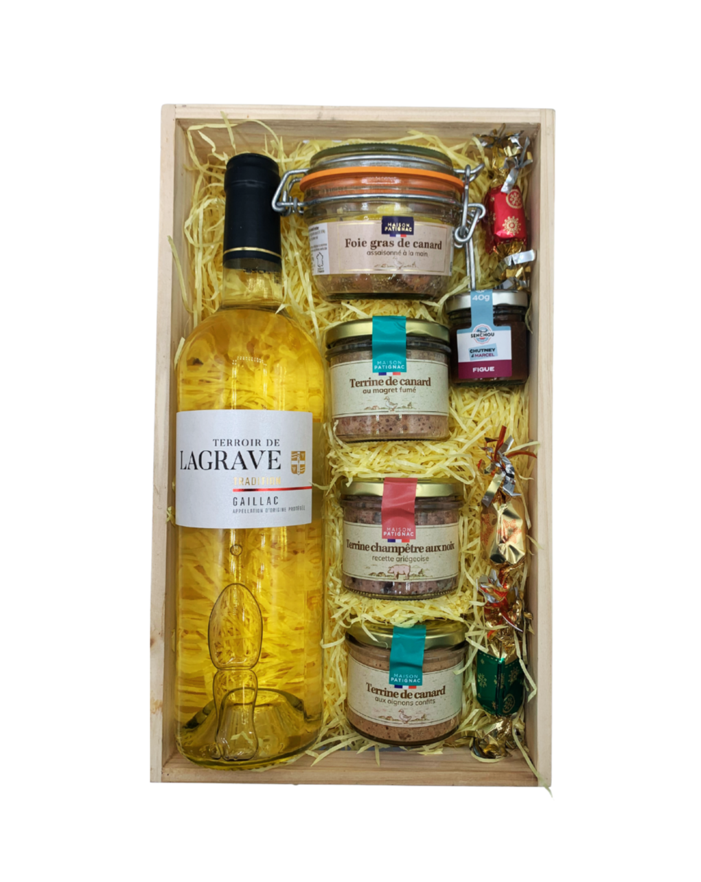 Une composition raffinée pour les fêtes de fin d’année, où l’art du canard se mêle à la douceur des accords sucrés-salés. Maison Patignac propose ici un coffret généreux alliant foie gras, terrines, vin et gourmandises, idéal pour un moment de partage et de plaisir.